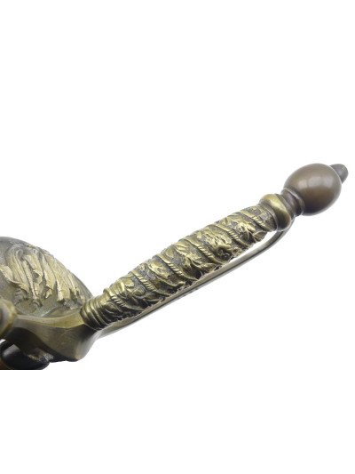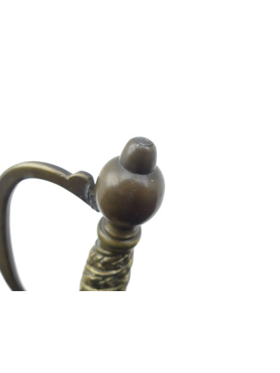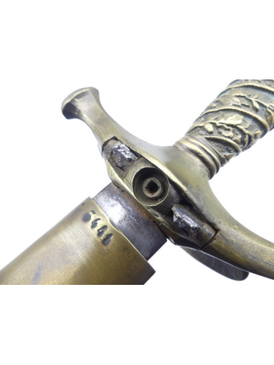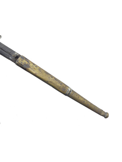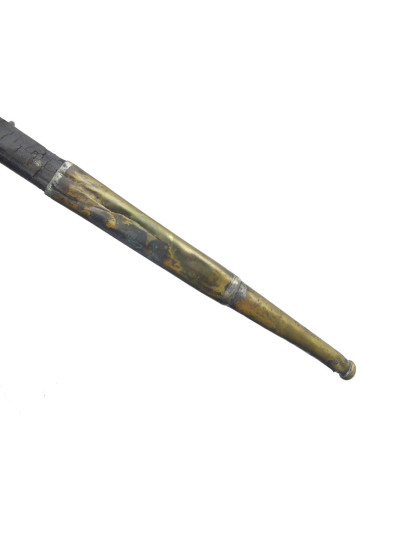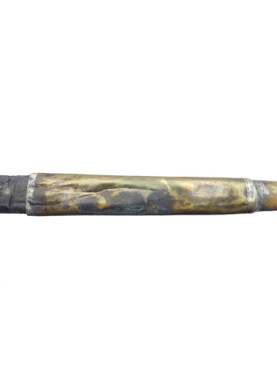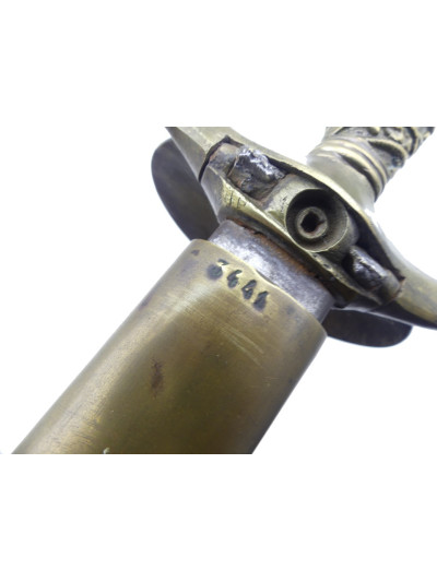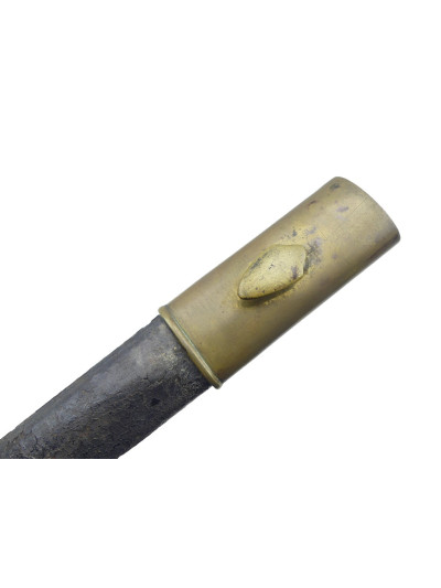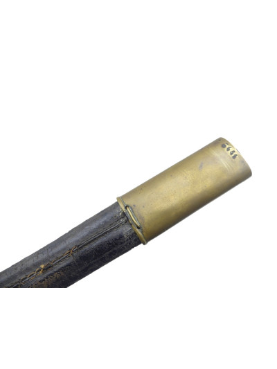 Sur le bas du fourreau une pièce de laiton a été rajoutée dans le passé, une partie de l'extrémité du fourreau étant manquante. Quelques traces de chocs et taches.
