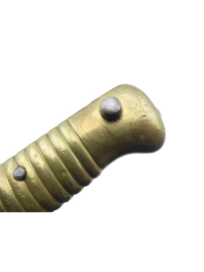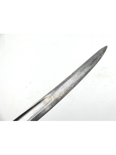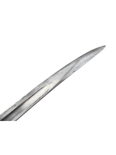 La lame de 57,5 cm est de forme yatagan et comporte un pan creux sur chaque face.
