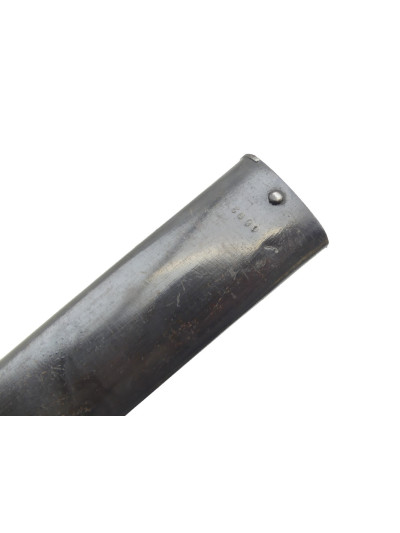 Fourreau en tôle d’acier dans son bronzage, trace de choc sur le côté extérieur, numéro différent.