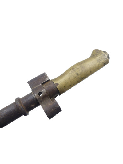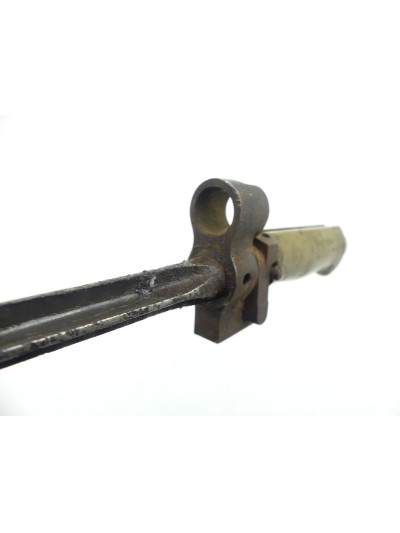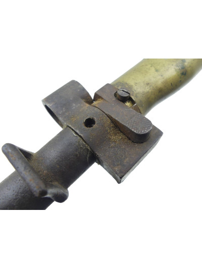 Modèle créé en février 1915. La suppression du quillon qui équipait la baïonnette 1886 est le résultat des premiers combats de tranchées au cours desquels on avait constaté que le quillon s'accrochait dans les barbelés ce qui gênait la progression du fantassin. ABC N 1442.