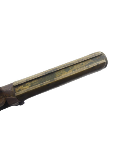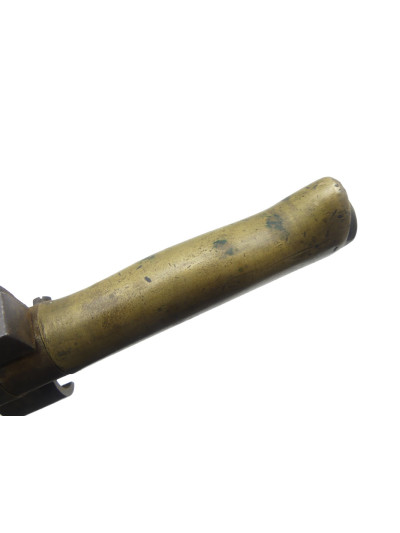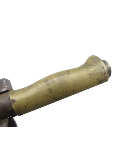 Poignée en laiton dans une légère patine avec quelques taches de surface, pommeau avec bouchon disparu.