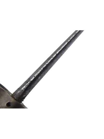 La lame de 523mm est de section quadrangulaire, elle est dans une patine foncée avec taches d’oxydation.