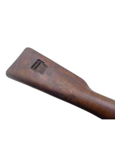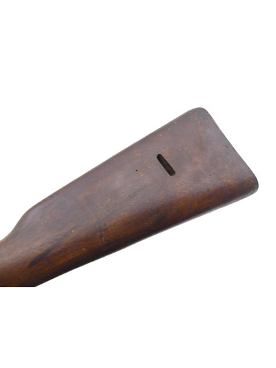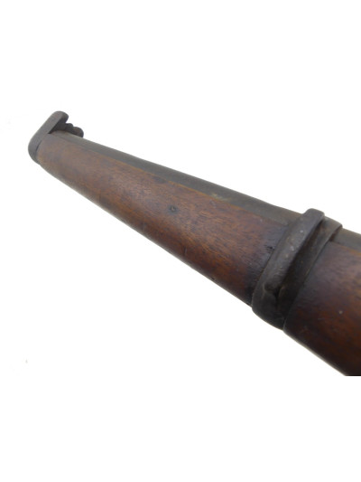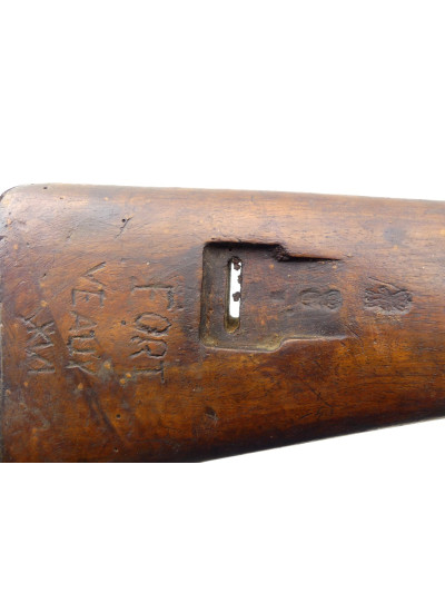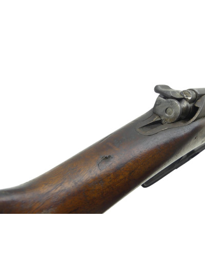 Bois à fût long dans une petite patine avec traces de manipulation par endroit, quelques trous de vers rebouché sur le côté gauche de la crosse.