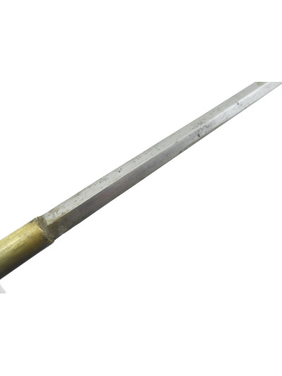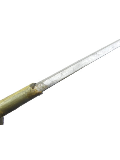 Lame lenticulaire de 58,5 cm dans une petite patine avec quelques petites taches de surface, départ avec décor floral encore un peu visible.
