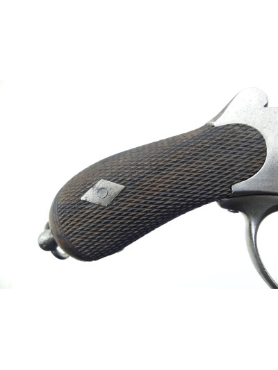 Poignée avec belles plaquettes en noyer au beau quadrillage.