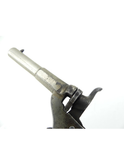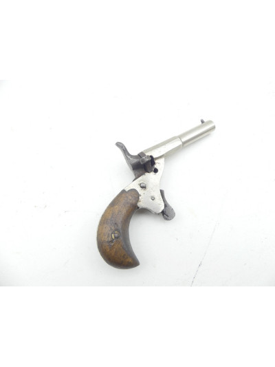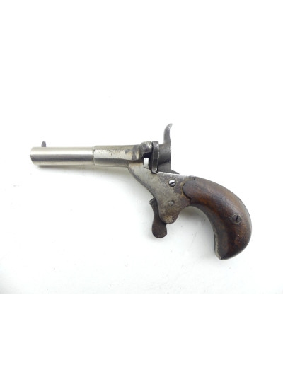 Pistolet de cycliste, également appelé "pistolet à moineaux" ou même "VeloDog", ou encore "pistolet de facteur", calibre 6mm bosquette, canon lisse, fabriqué à des milliers d'exemplaires en France vers 1895-1900 et exporté dans toute l'Europe. La plupart ont été fabriqués en France ou en Belgique, vendus "en blanc" en Allemagne, et éprouvés à Brême. Le U surmonté de deux couronnes est le poinçon officiel de Brême et signifie "untersucht" (éprouvé). Ce type de pistolet était offert en prime à tout acheteur d'un vélo. De nombreuses variantes ont été produites et il constitue un thème de collection à lui tout seul.