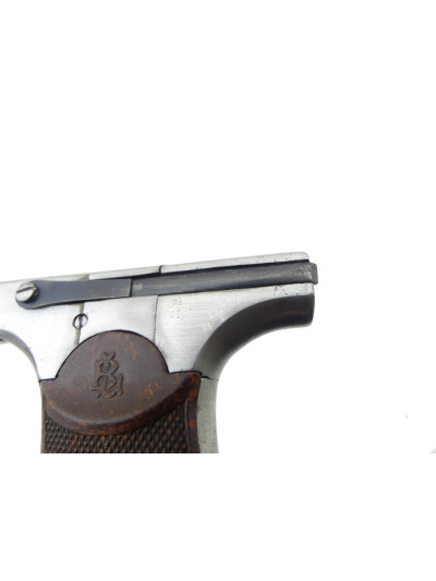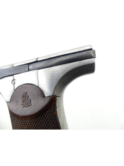 Les plaquettes de crosse en galalithe brune chinée orange quadrillée sont marquées du chiffre « BL » entrelacé.