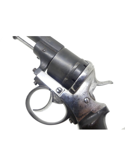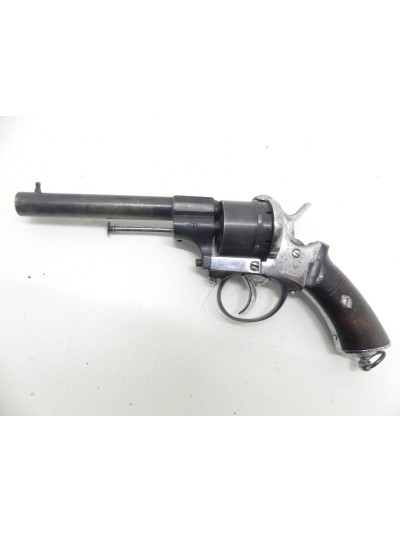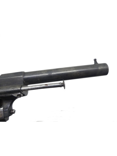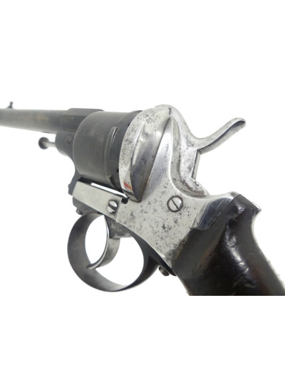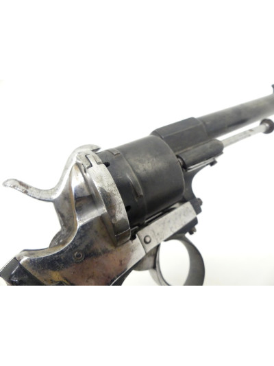 Barillet à 6 chambres et canon dans leur bronzage un peu éclairci par endroit, poinçon de Liège.