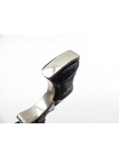 Crosse à angle droit avec plaquettes en ébonite quadrillée avec inscription Cyclo dans le haut.