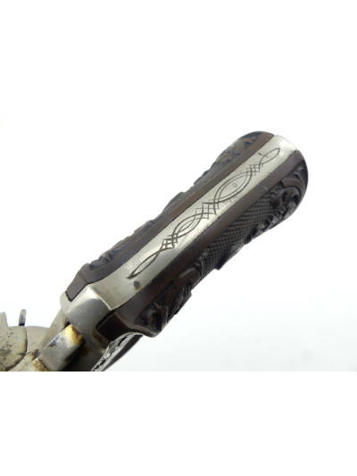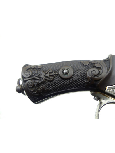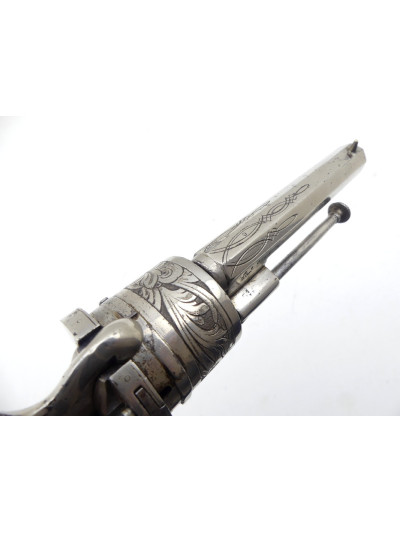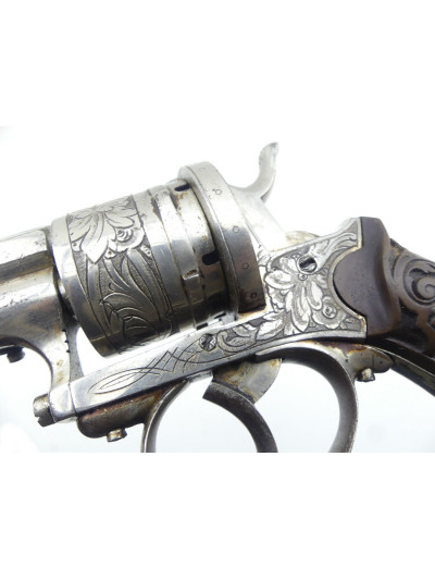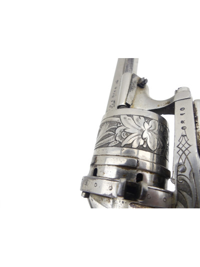 Joli décor floral gravé en relief sur le bâti et le barillet à six chambres.