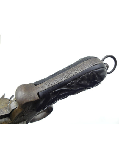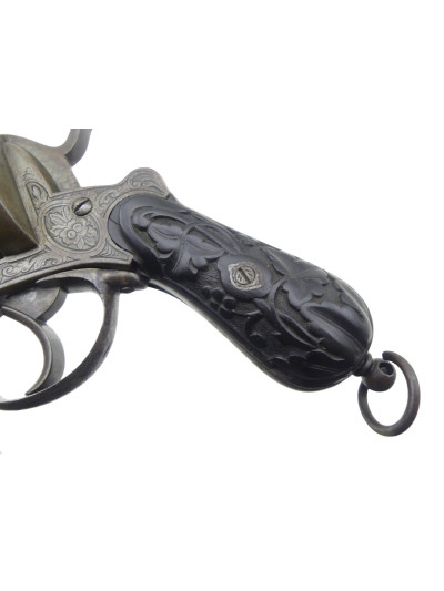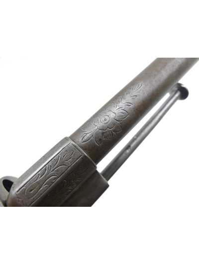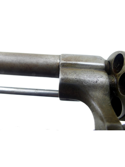 Joli décor floral gravé en relief sur le bâti et le barillet à six chambres.