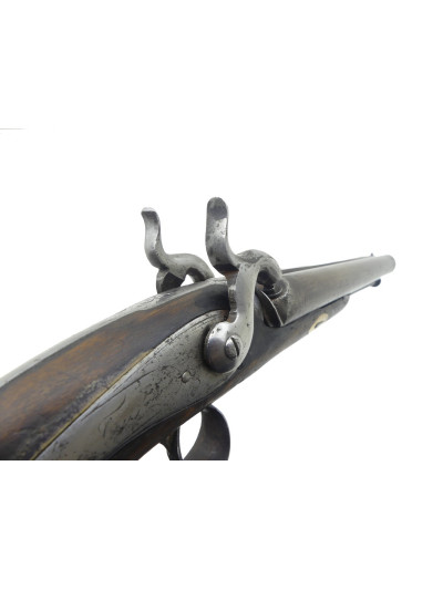 Pistolet utilisé à la chasse à courre, notamment pour donner le coup de grâce. Ce type de pistolet à deux coups s’inspirait des fusils de chasse de l’époque.