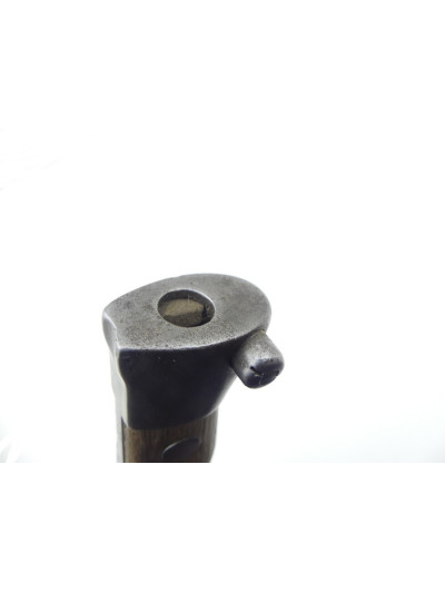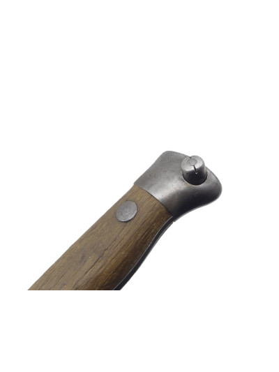 La poignée possède deux plaquettes en bois dans une jolie patine, maintenues par deux rivets, deux traces de manipulation sur celle de droite.