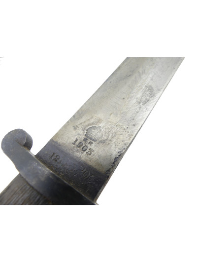 Marquage de la couronne britannique avec la date 1903 sur un côté et ponçons anglais dont la broad arrow de l’armée britannique sur l’autre.