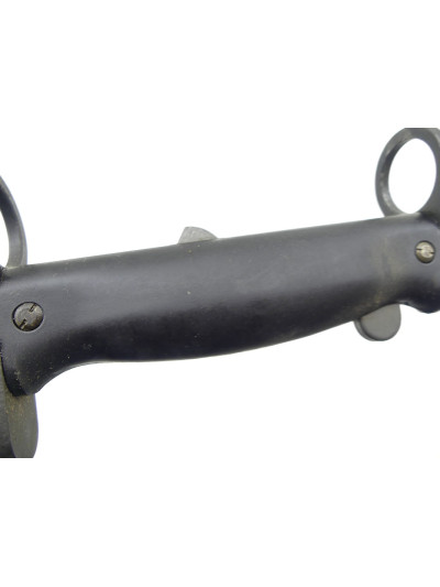 Monture phosphatée avec deux anneaux, l’un au talon et l’autre sur la garde qui comporte un quillon à l’opposé marqué MAS 78.