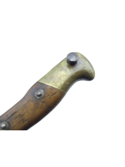Les plaquettes en bois maintenues par deux rivets sont dans jolie patine, quelques traces de manipulation sur celle de gauche.