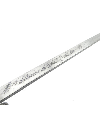 Bonne lame droite de 522 mm avec son dos en T bien marqué de la Manufacture d’Armes de Châtellerault en Juillet 1875.