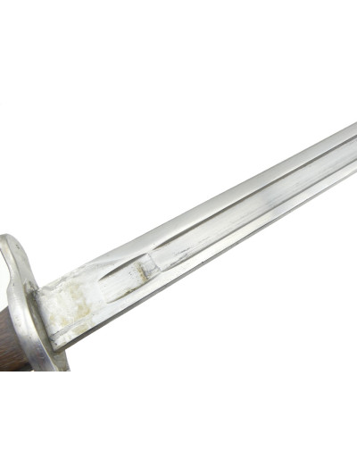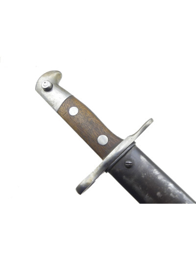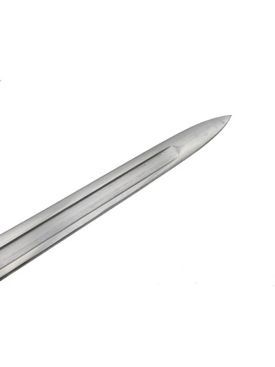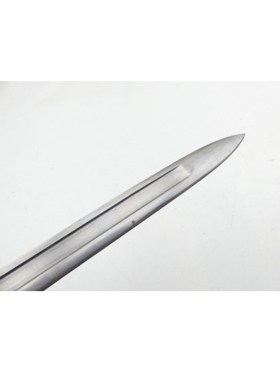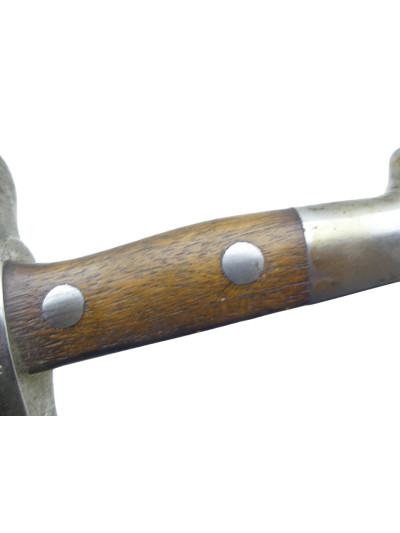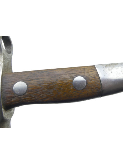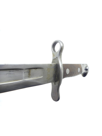 La garde comporte un quillon droit en forme de spatule avec bague à l'opposé.