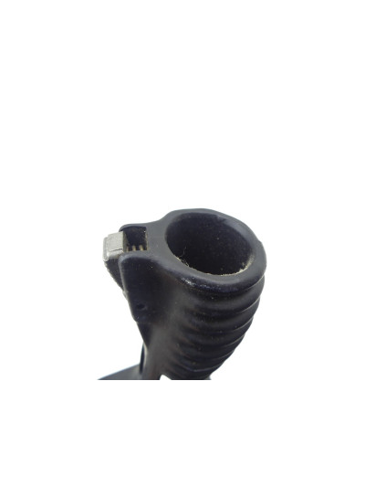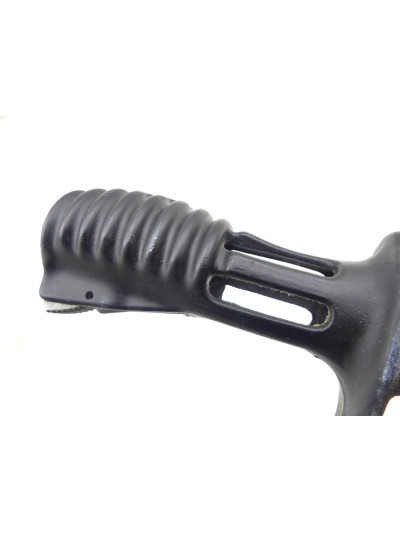 Poignée tubulaire en acier moulé peint en noir formant un cache-flamme percé de cinq ouïes longitudinales.
