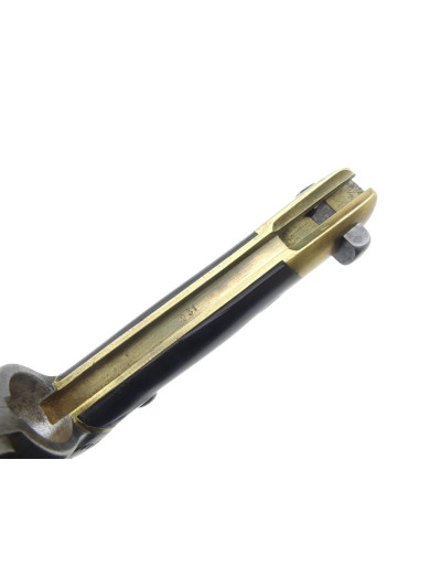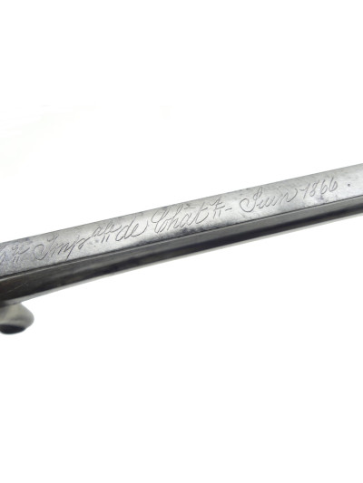 En 1864, ka Commission de Vincennes avait été chargée d’étudier une arme nouvelle de petit calibre. L’arme qui fut réalisée était à chargement par la bouche. Les premières carabines dites de Vincennes, du nom de la Commission qui les mettait au point, furent livrées en 1865 d’où l’appellation du modèle. La production de la carabine et de sa baïonnette continua, en quantités limitées, jusqu’en août 1866. ABC N 1730 , indice de rareté trois étoiles, pièce très peu courante.
