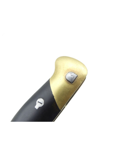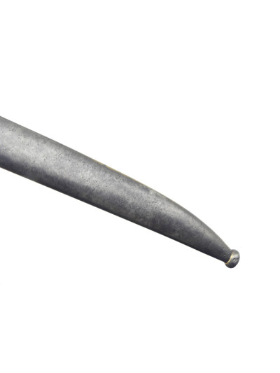 La soie de la lame est vissée au pommeau par un gros écrou arasé à deux trous.