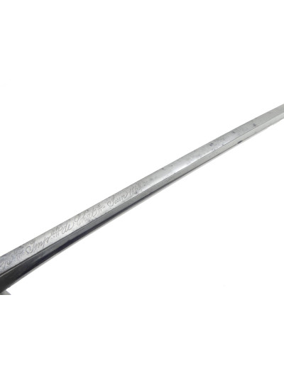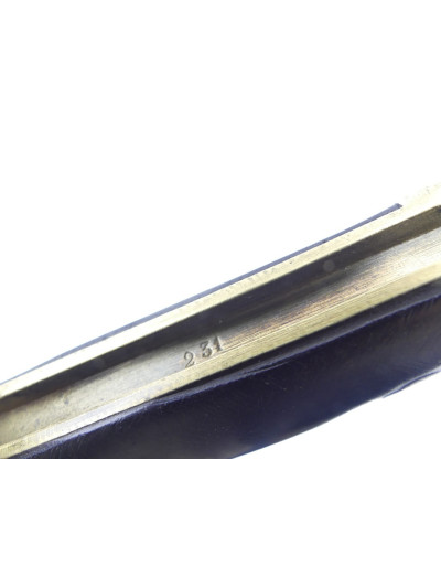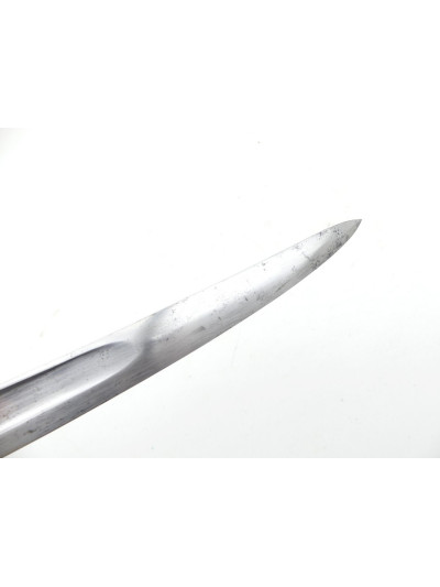 Lame de 575mm de type yatagan à tranchant et contre-tranchant. Pan creux sur chaque face.