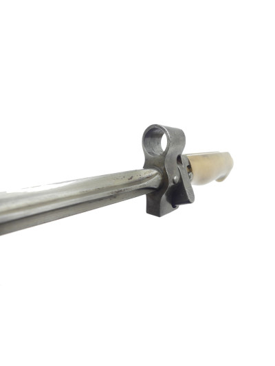 Modèle créé en février 1915. La suppression du quillon qui équipait la baïonnette 1886 est le résultat des premiers combats de tranchées au cours desquels on avait constaté que le quillon s'accrochait dans les barbelés. ABC N 1442.