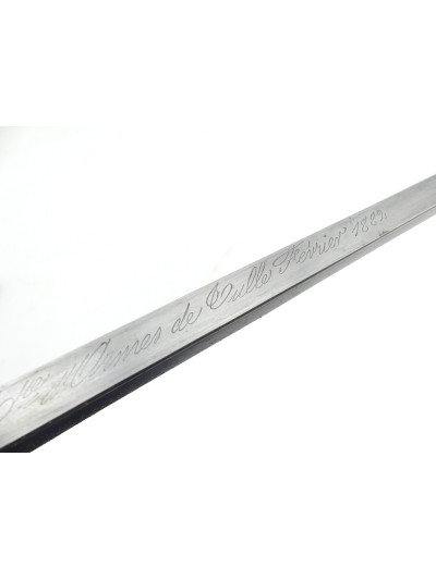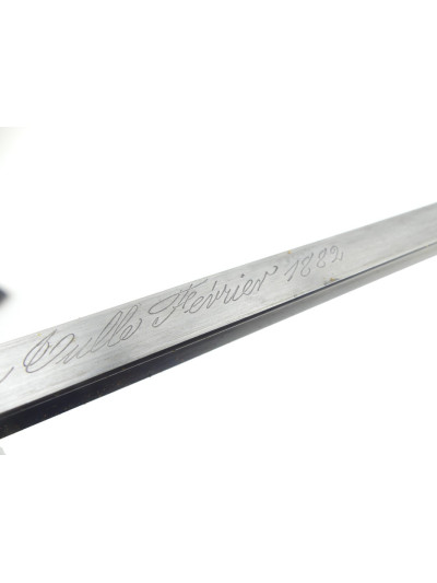 Bonne lame droite de 520 mm avec son dos en T marqué de la Manufacture d’Armes de Tulle en Février 1882.