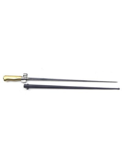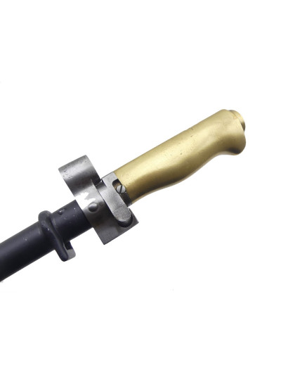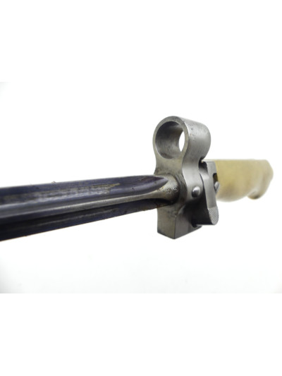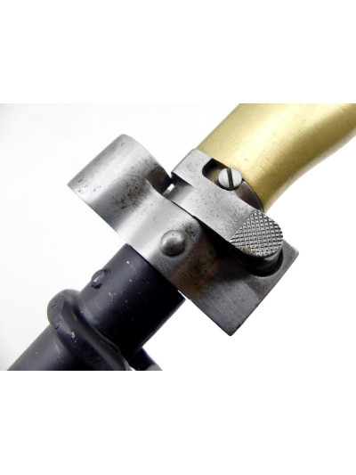 Modèle créé en février 1915. La suppression du quillon qui équipait la baïonnette 1886 est le résultat des premiers combats de tranchées au cours desquels on avait constaté que le quillon s'accrochait dans les barbelés. ABC N 1442.