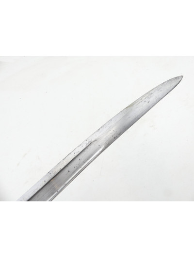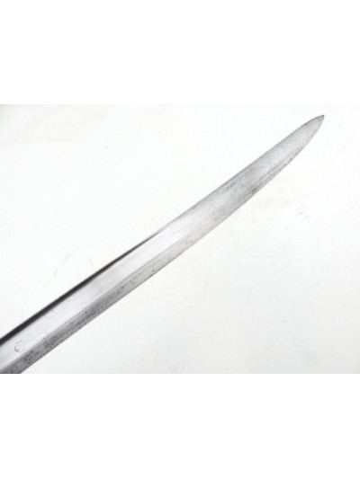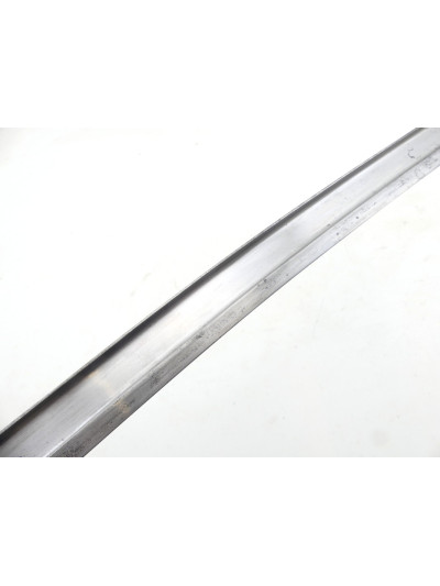 La lame de 57,5 cm est de forme yatagan et comporte un pan creux sur chaque face.