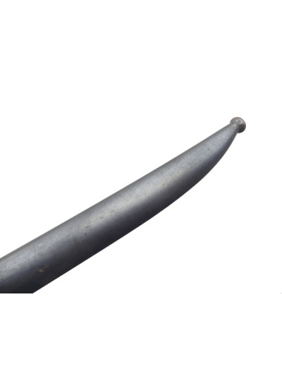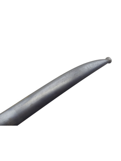 Croisière acier polie dans une patine grise, avec un long quillon recourbé et une bague à l'opposé.