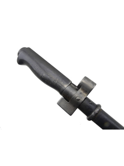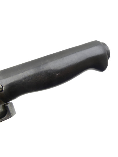 Le fourreau en tôle d’acier est dans son bronzage avec quelques petites taches d’oxydation de surface par endroit, pontet métallique, au matricule.
