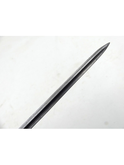 La lame de 520mm est de section quadrangulaire, elle est polie dans une petite patine grise, deux poinçons circulaires au départ.