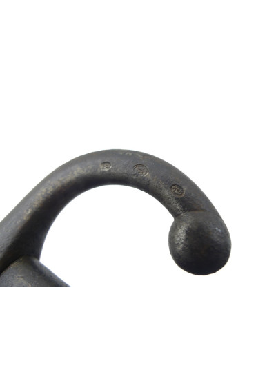 Fourreau en tôle d’acier avec oxydation de surface peint en noir, pontet métallique, au numéro.
