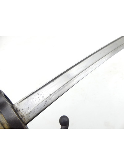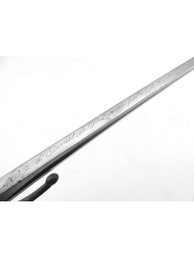La lame de 57,5 cm est de forme yatagan et comporte un pan creux sur chaque face.