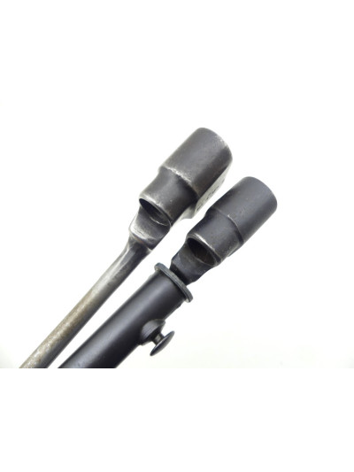 La seconde a un fourreau en tôle d’acier dans son bronzage avec entrée en zinc, bouton de chape circulaire, extrémité avec bouton sphérique.
