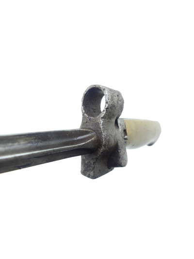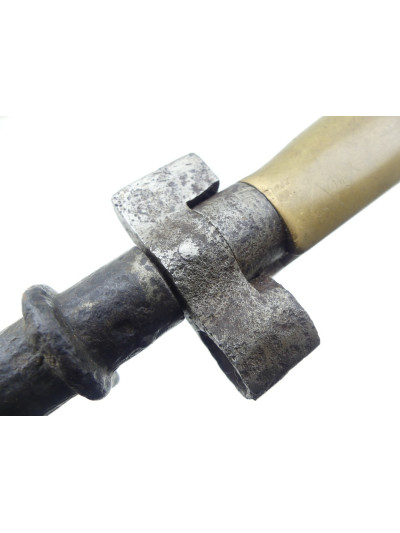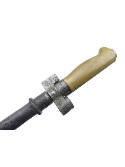Modèle créé en février 1915. La suppression du quillon qui équipait la baïonnette 1886 est le résultat des premiers combats de tranchées au cours desquels on avait constaté que le quillon s'accrochait dans les barbelés. ABC N 1442.