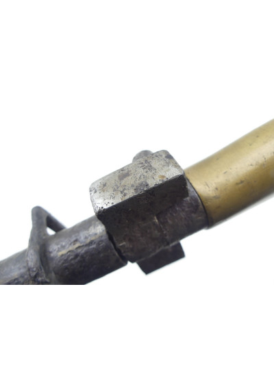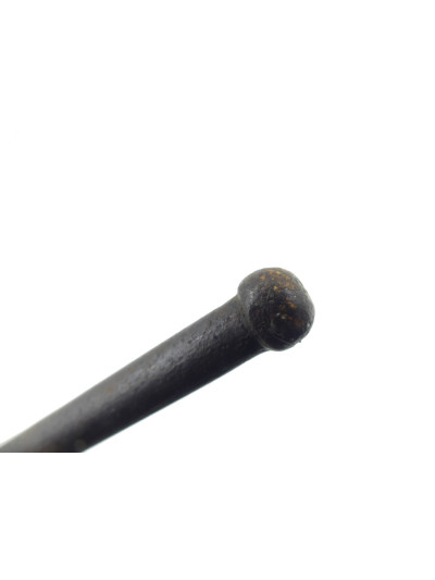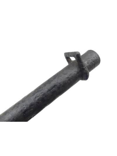 Le fourreau en tôle d’acier est dans une patine foncée.