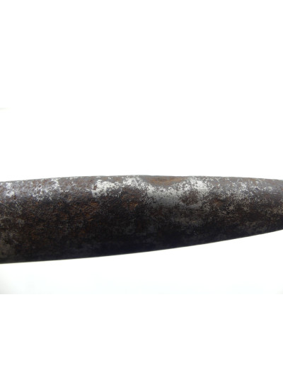 La poignée est dans une patine grise avec petites piqûres et taches d’oxydation à la surface.
