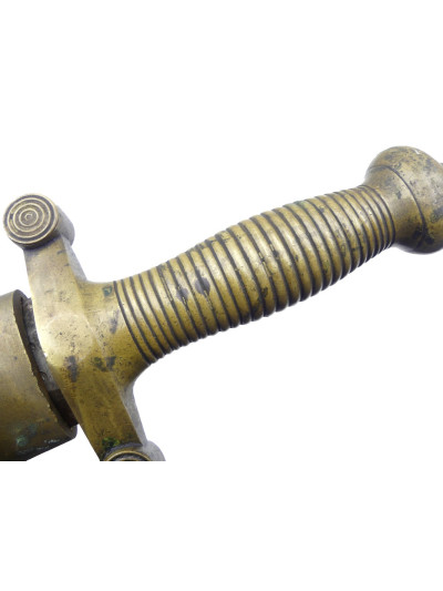 Chape à pontet et bouterolle en laiton, dans une patine d’âge.