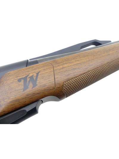 Lettre W de Winchester sur les côtés du devant et le dessous de la crosse.