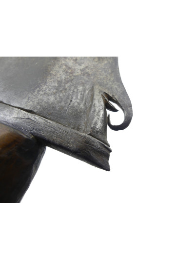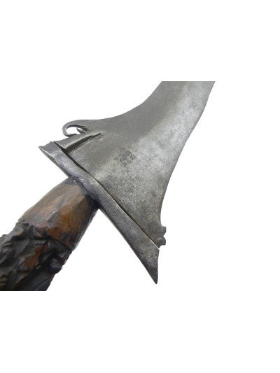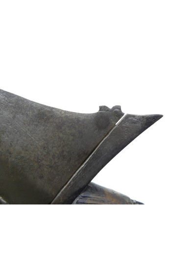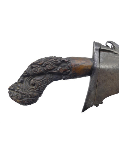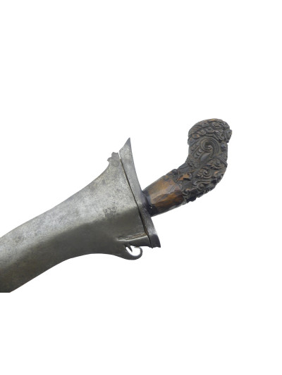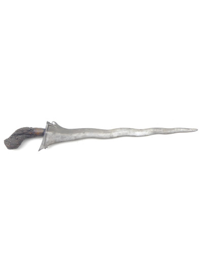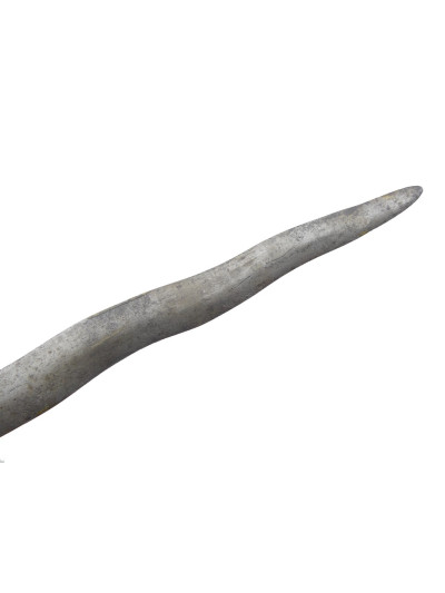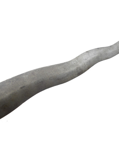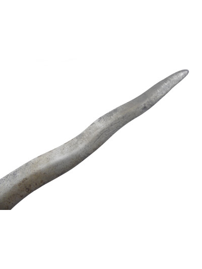 Bonne lame forgée de 44 cm, de forme ondulée avec petite tête d’éléphant à la base du dos.