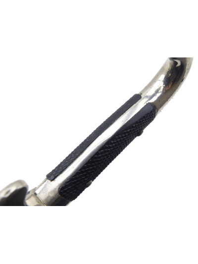 Poignée avec parie de plaquettes quadrillées maintenues par deux rivets.