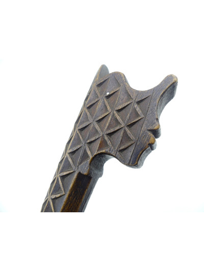 Monture en bois avec pommeau en tête de chien stylisée et poignée à pans.