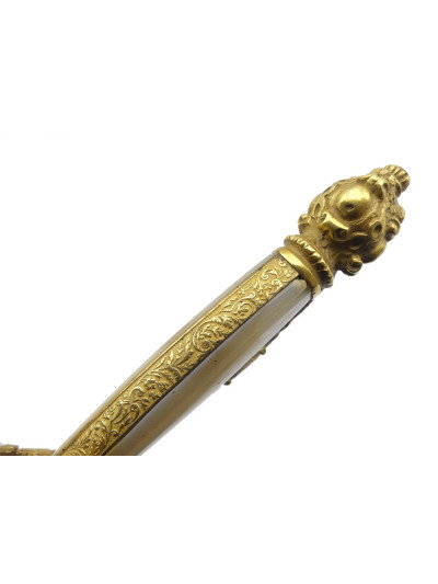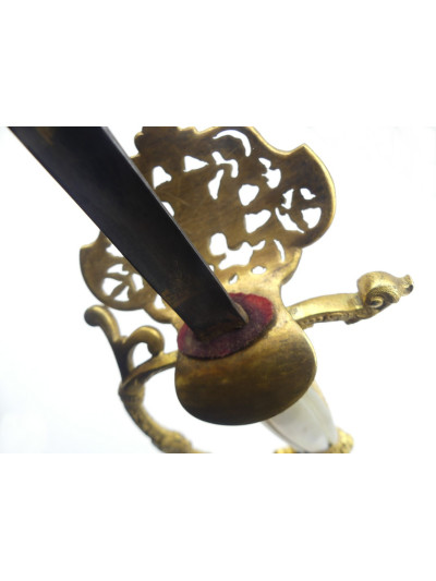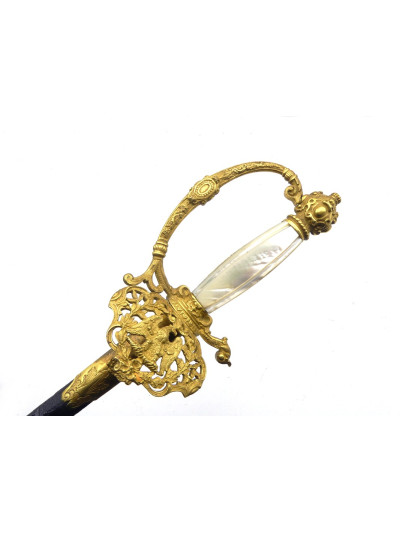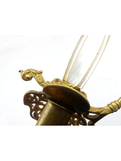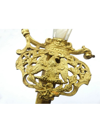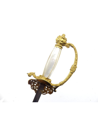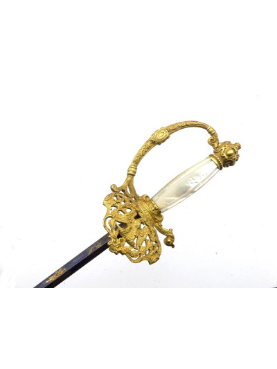 Ce type d'épée était porté par les officiers en tenue de gala. Leurs décors et leurs symboles participaient au prestige du régime impérial. Cette belle épée a du participer aux grandes heures de la fête impériale.