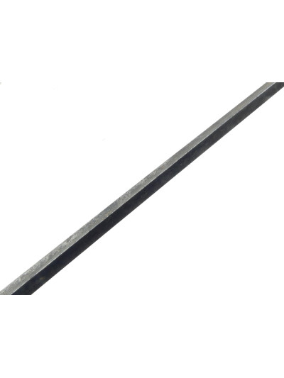 Lame droite triangulaire de 75cm dans une patine grise avec taches d’oxydation sur la seconde moitié.