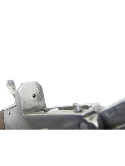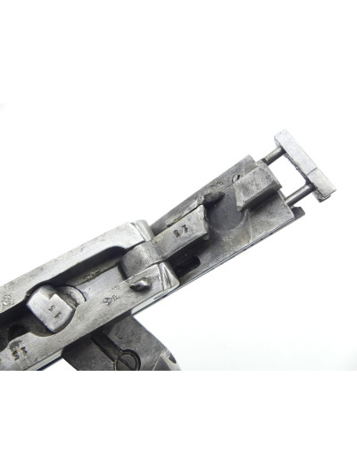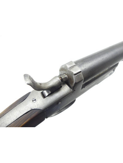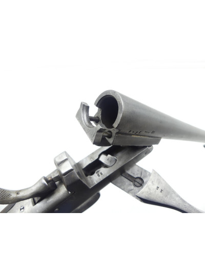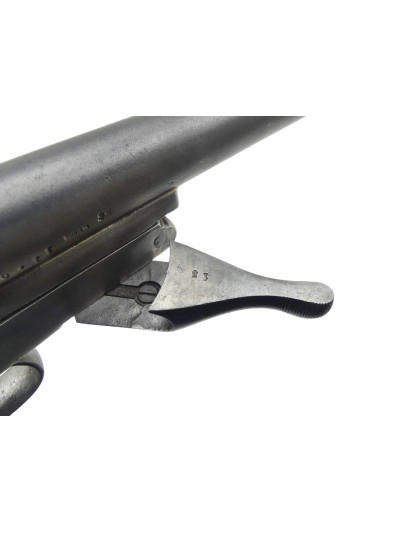 Mécanisme fonctionnel, chien extérieur. Le canon bascule grâce à un levie strié situé devant la bascule, pas de jeu au verrouillage.