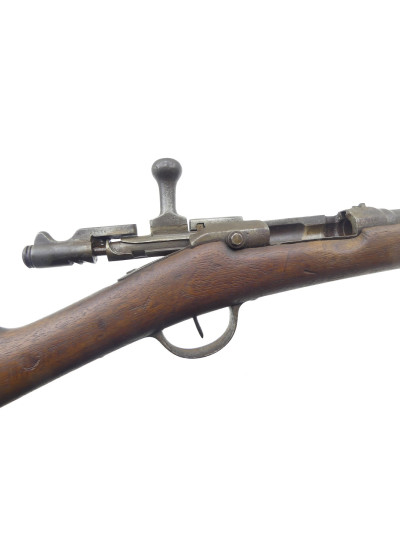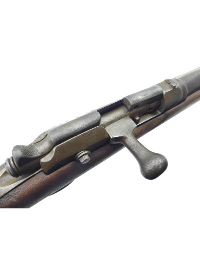 La culasse mobile à levier droit est dans une patine grise, numéros différents.