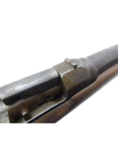 Le canon et la culasse sont dans une patine grise, surface oxydée avec piqûres plus ou moins prononcées.