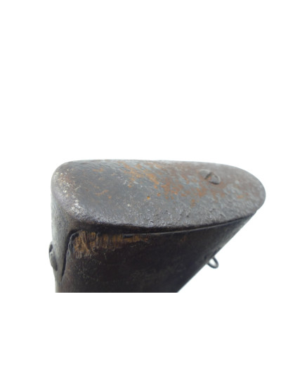Plaque de couche avec forte oxydation, pontet en acier dans une patine foncée avec oxydation.
